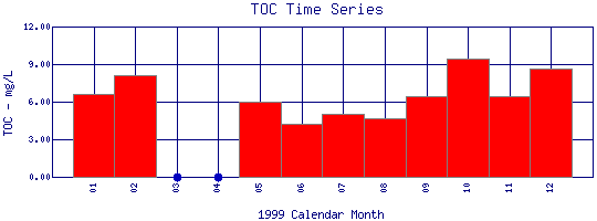Total Organic Carbon Time Series for 1999 Boulder Creek above Dry Creek |