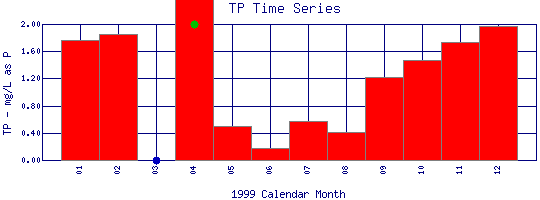 Total Phosphate Time Series for 1999 Boulder Creek above Dry Creek |