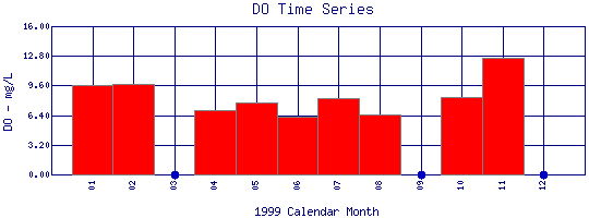 Dissolved Oxygen Time Series for 1999 Boulder Creek above WW Plant |