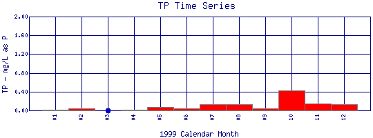 Total Phosphate Time Series for 1999 Boulder Creek above WW Plant |