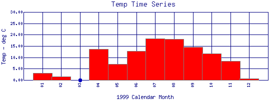 Water Temperature Time Series for 1999 Boulder Creek above WW Plant |