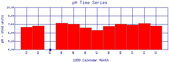 pH Time Series for 1999 Boulder Creek above WW Plant |