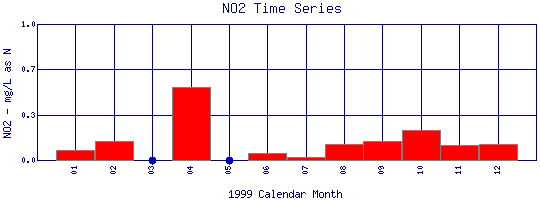 Nitrite Time Series for 1999 Boulder Creek Below Coal Creek |