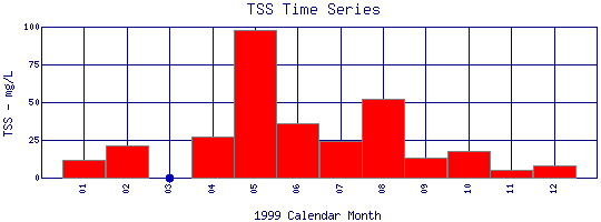 Total Suspended Solids Time Series for 1999 Boulder Creek Below Coal Creek |
