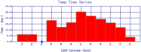 Water Temperature Time Series for 1999 Boulder Creek Below Coal Creek |