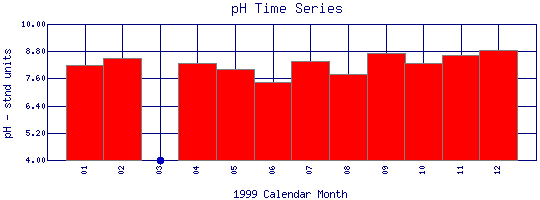 pH Time Series for 1999 Boulder Creek Below Coal Creek |