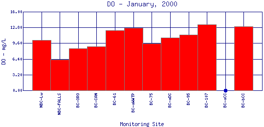 Longitudinal Dissolved Oxygen Profiles for January, 2000