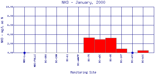 The above map indicates water quality monitoring sites. To view data at a specific site select it from the map with the mouse.