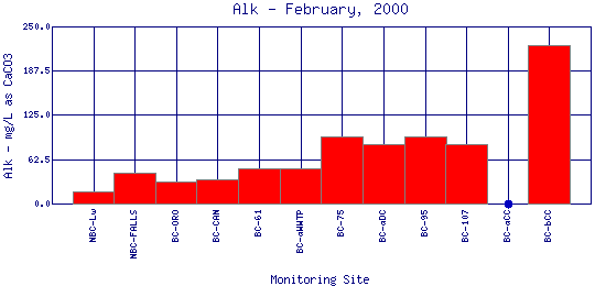 Alkalinity refers to how well a water body can neutralize acids. Alkalinity measures the amount of alkaline compounds in water, such as carbonates (CO3 2-), bicarbonates (HCO3 -), and hydroxides (OH-). These compounds are natural buffers that can remove excess hydrogen ions that have been added from sources such as acid rain or acid mine drainage. Alkalinity mitigates or relieves metals toxicity by using available HCO3 - and CO3 2- to take metals out of solution, thus making it unavailable to fish. Alkalinity is affected by the geology of the watershed; watersheds containing limestone will have a higher alkalinity than watersheds where granite is predominant. The Boulder Creek Watershed is composed primarily of granite rocks, thus the water has a lower alkalinity content.