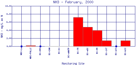 The above map indicates water quality monitoring sites. To view data at a specific site select it from the map with the mouse.