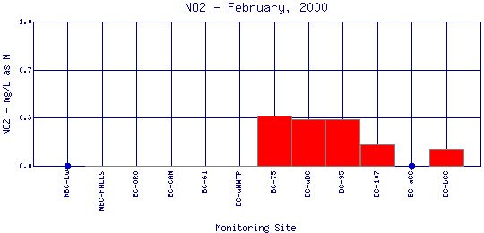 The above map indicates water quality monitoring sites. To view data at a specific site select it from the map with the mouse.