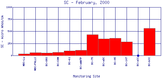 Longitudinal Specific Conductance Profiles for February, 2000