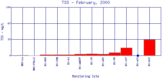 Longitudinal Total Suspended Solids Profiles for February, 2000