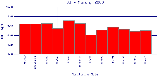 Longitudinal Dissolved Oxygen Profiles for March, 2000
