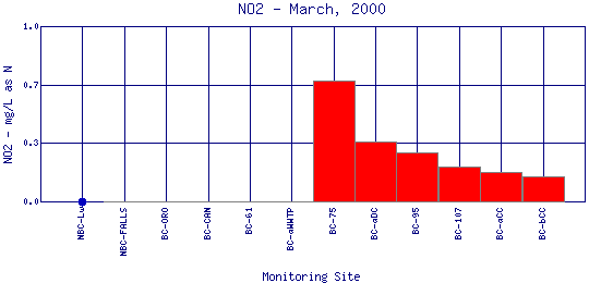 The above map indicates water quality monitoring sites. To view data at a specific site select it from the map with the mouse.