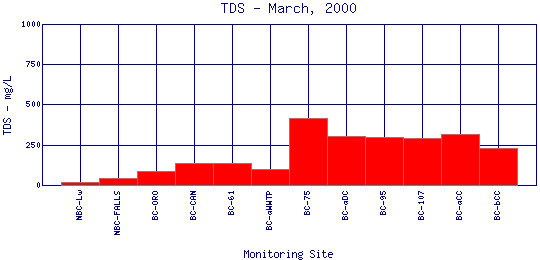 Longitudinal Total Dissolved Solids Profiles for March, 2000