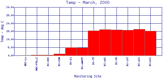 The above map indicates water quality monitoring sites. To view data at a specific site select it from the map with the mouse.
