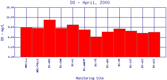 Longitudinal Dissolved Oxygen Profiles for April, 2000