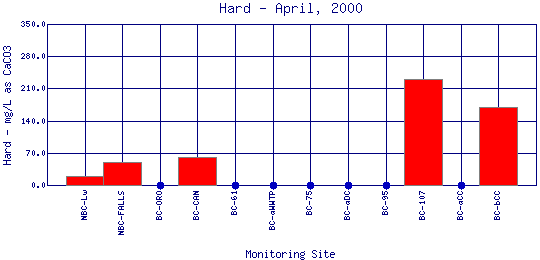 Hardness generally refers to the amount of calcium and magnesium in water. In household use, these cations (ions with a charge greater than +1) can prevent soap from sudsing and leave behind a white scum in bathtubs. In the aquatic environment, calcium and magnesium help keep fish from absorbing metals, such as lead, arsenic, and cadmium, into their bloodstream through their gills. Therefore, the harder the water, the less easy it is for toxic metals to absorb onto gills. Water in the Boulder Creek watershed is generally soft because the water comes mainly from melting snow which is low in minerals and metals.