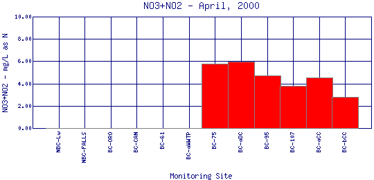 Longitudinal Nitrate + Nitrite Profiles for April, 2000