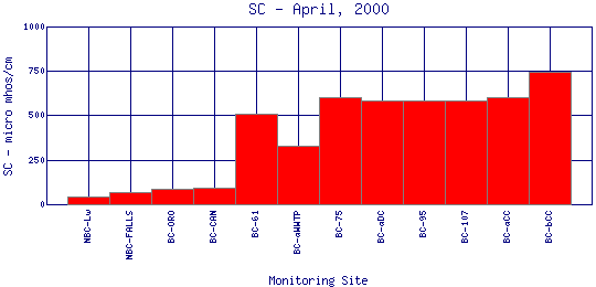 Longitudinal Specific Conductance Profiles for April, 2000