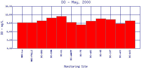 Longitudinal Dissolved Oxygen Profiles for May, 2000
