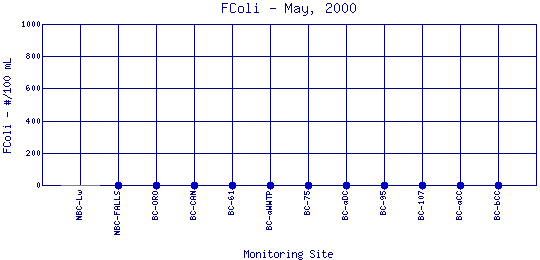 Longitudinal Fecal Coliform Profiles for May, 2000