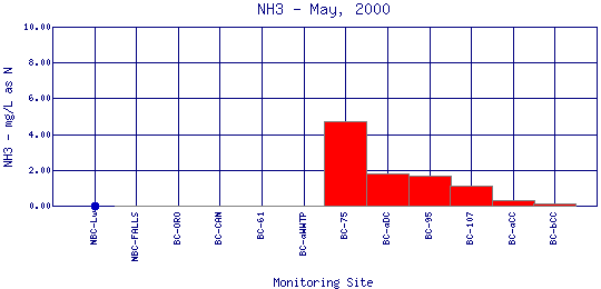 The above map indicates water quality monitoring sites. To view data at a specific site select it from the map with the mouse.