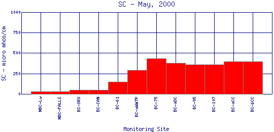 Longitudinal Specific Conductance Profiles for May, 2000