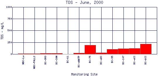 Longitudinal Total Dissolved Solids Profiles for June, 2000