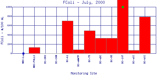 Longitudinal Fecal Coliform Profiles for July, 2000