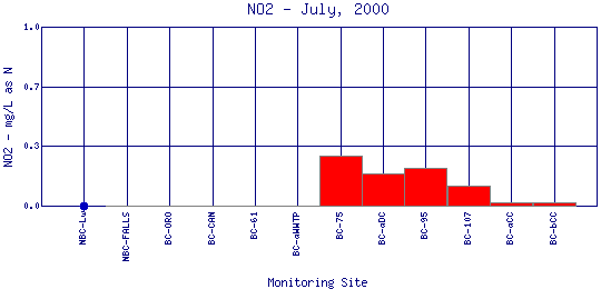 The above map indicates water quality monitoring sites. To view data at a specific site select it from the map with the mouse.