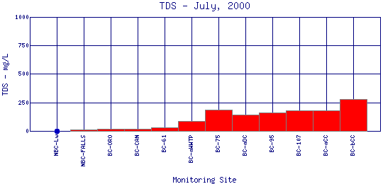 Longitudinal Total Dissolved Solids Profiles for July, 2000