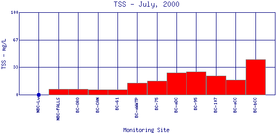 Longitudinal Total Suspended Solids Profiles for July, 2000