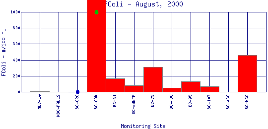 Longitudinal Fecal Coliform Profiles for August, 2000