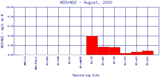 Longitudinal Nitrate + Nitrite Profiles for August, 2000