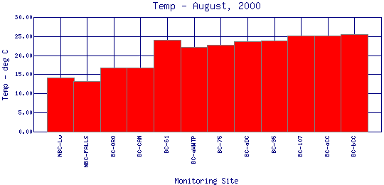 Longitudinal Water Temperature Profiles for August, 2000