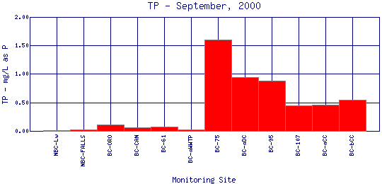 The above map indicates water quality monitoring sites. To view data at a specific site select it from the map with the mouse.