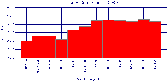 Longitudinal Water Temperature Profiles for September, 2000