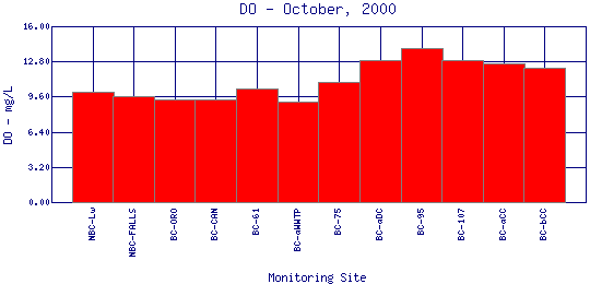 Longitudinal Dissolved Oxygen Profiles for October, 2000