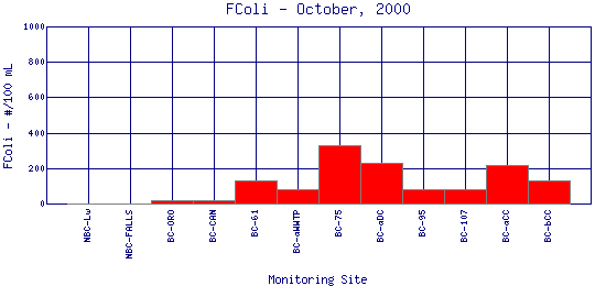 Longitudinal Fecal Coliform Profiles for October, 2000