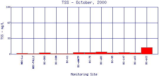Longitudinal Total Suspended Solids Profiles for October, 2000