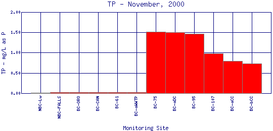 The above map indicates water quality monitoring sites. To view data at a specific site select it from the map with the mouse.