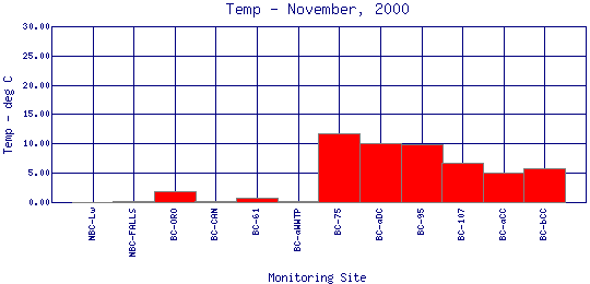 Longitudinal Water Temperature Profiles for November, 2000