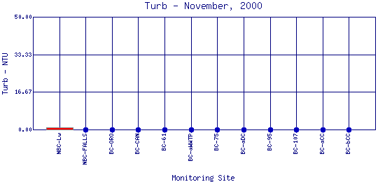 The above map indicates water quality monitoring sites. To view data at a specific site select it from the map with the mouse.