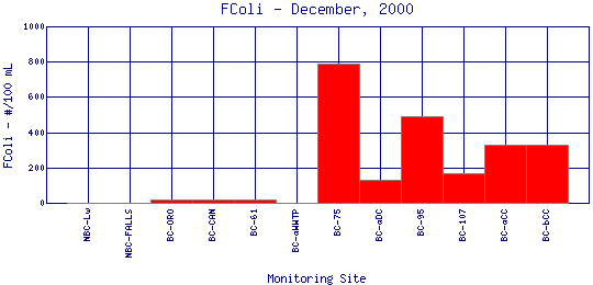 Longitudinal Fecal Coliform Profiles for December, 2000