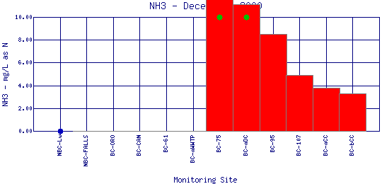 The above map indicates water quality monitoring sites. To view data at a specific site select it from the map with the mouse.