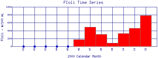 Select on the table date to view stream Fecal Coliform profiles observed on that date.