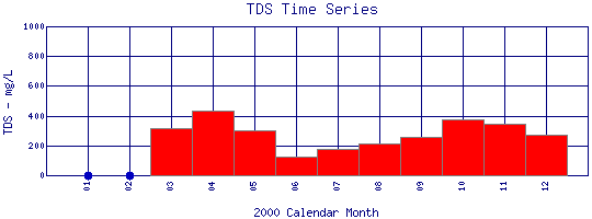 Total Dissolved Solids Time Series for 2000 Boulder Creek Above Coal Creek |