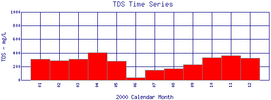 Total Dissolved Solids Time Series for 2000 Boulder Creek above Dry Creek |